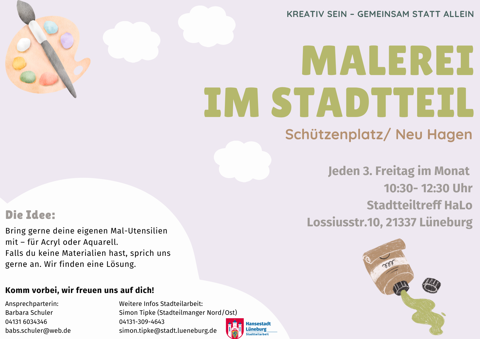 Ein Malerei-Workshop findet jeden dritten Freitag im Monat von 10:30 bis 12:30 Uhr im Stadtteiltreff HaLo, Lossiusstraße 10, statt.