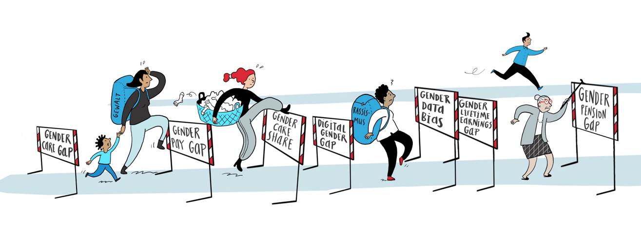 Diese Gender Gaps bilden die Indikatoren für strukturelle Diskriminierungen insbesondere der Personen, die überwiegend fürsorgende Aufgaben übernehmen. Diese unverzichtbare, aber dennoch oft unsichtbare Arbeit leisten nach wie vor deutlich mehr Frauen als Männer.