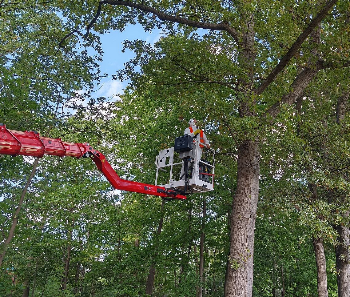 Entfernung von Eichenprozessionsspinner-Nestern an einem Straßenbaum