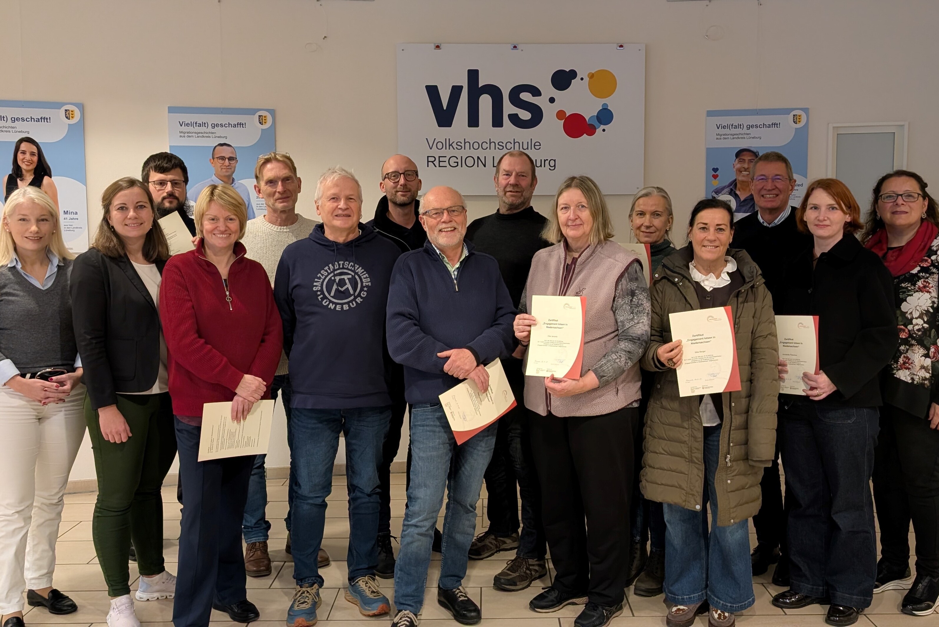 Sie wirken als Bindeglied zwischen Haupt- und Ehrenamt: 13 Teilnehmenden konnte Bürgermeisterin Jule Grunau jetzt ihre Zertifikate als Engagementlotsinnen und -lotsen für die Region übergeben.