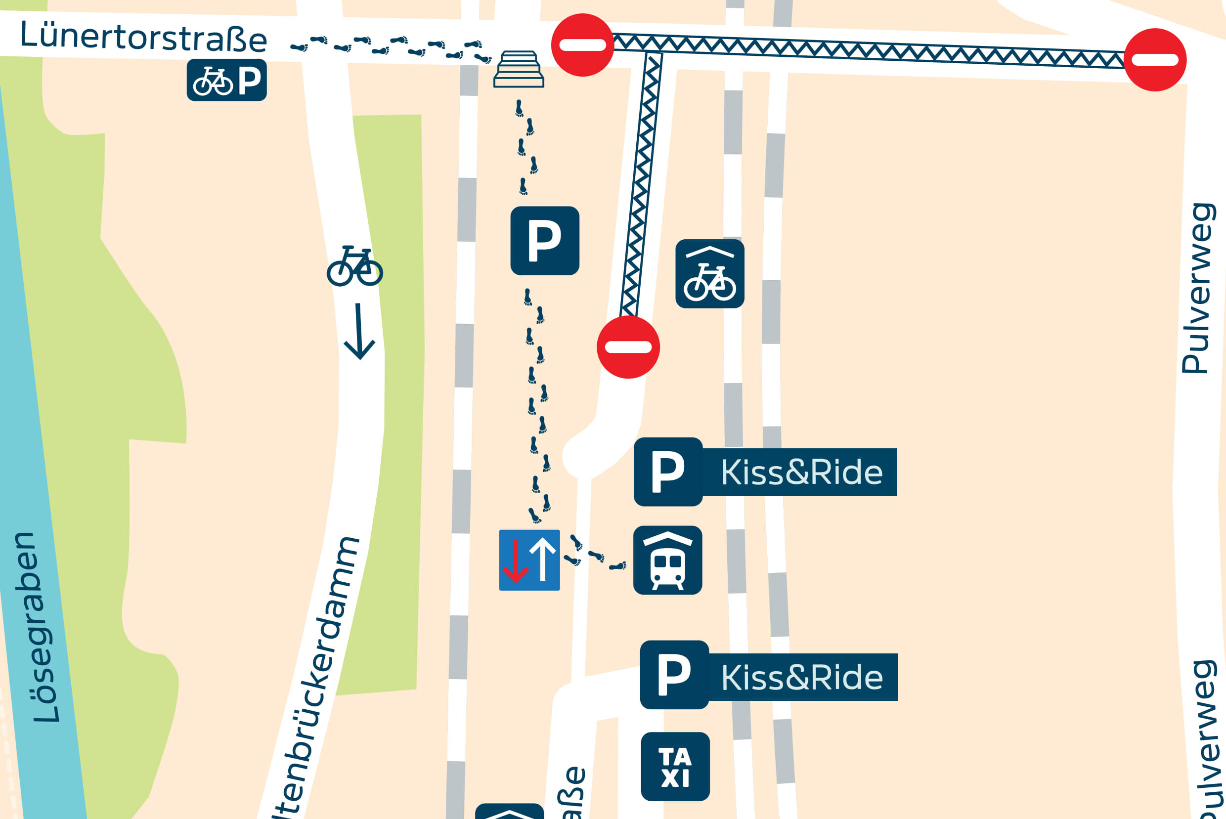 Für den Ablauf der Baustelle in der Dahlenburger Landstraße plant die Hansestadt ab Sommer 2025 mit einer abschnittsweisen Vollsperrung. So kann die gesamte Baumaßnahme in zwei Jahren abgeschlossen werden.