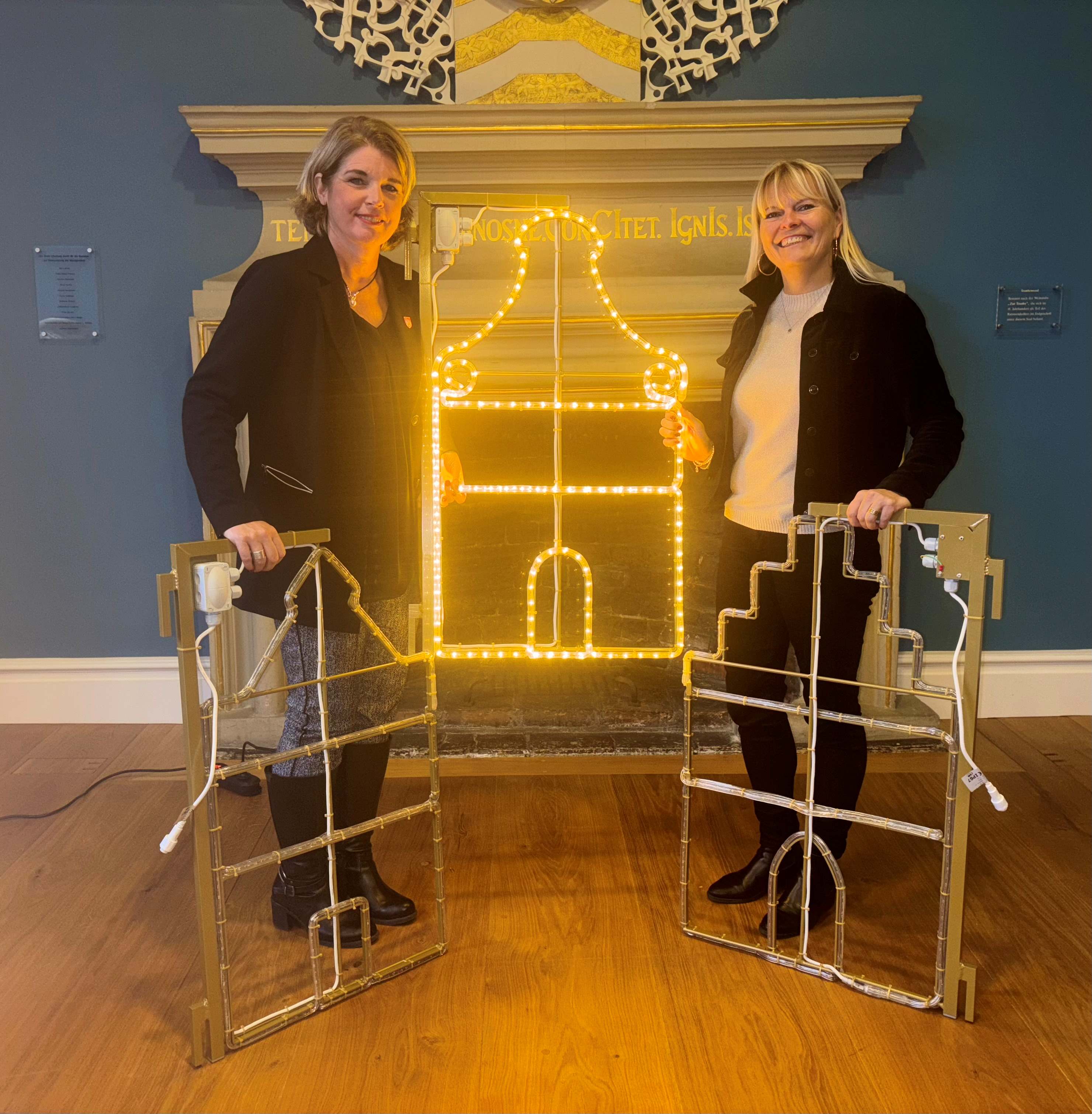 Oberbürgermeisterin Claudia Kalisch (links) und Melanie-Gitte Lansmann, Geschäftsführerin der Lüneburg Marketing GmbH, stellen die Winterbeleuchtung vor.