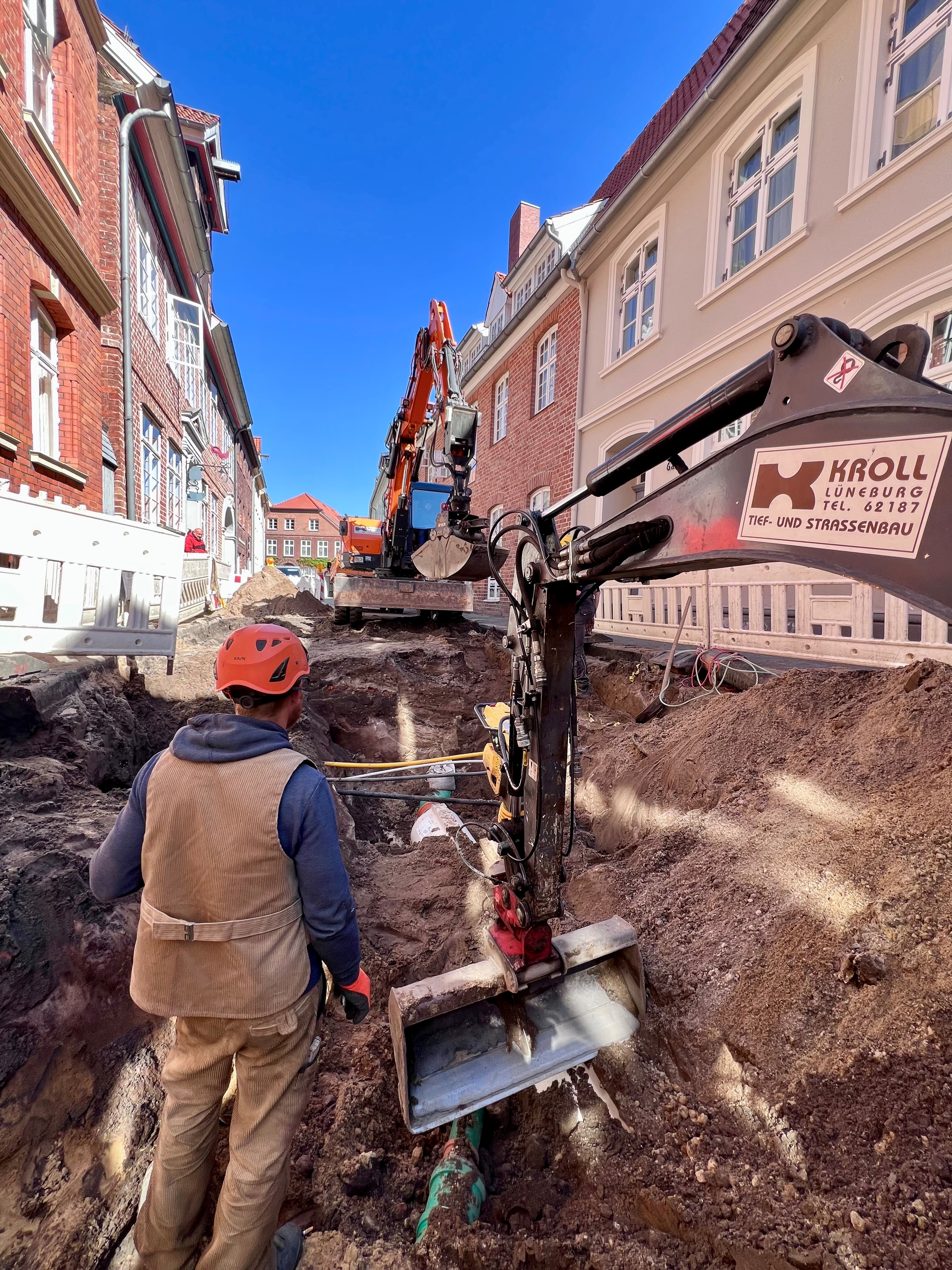 Wie im ersten Bauabschnitt werden auch im aktuellen Bauabschnitt zunächst die Kanäle erneuert und anschließend Leitungen verlegt – dazu zählen auch Fernwärmeleitungen und Leerrohre für die Telekommunikation. Zum Schluss erfolgt die Pflasterung nach historischem Vorbild. Dafür nutzt die Hansestadt Natursteine aus dem alten Hafen und historische Steine, die beim Öffnen der Asphaltdecke geborgen wurden.