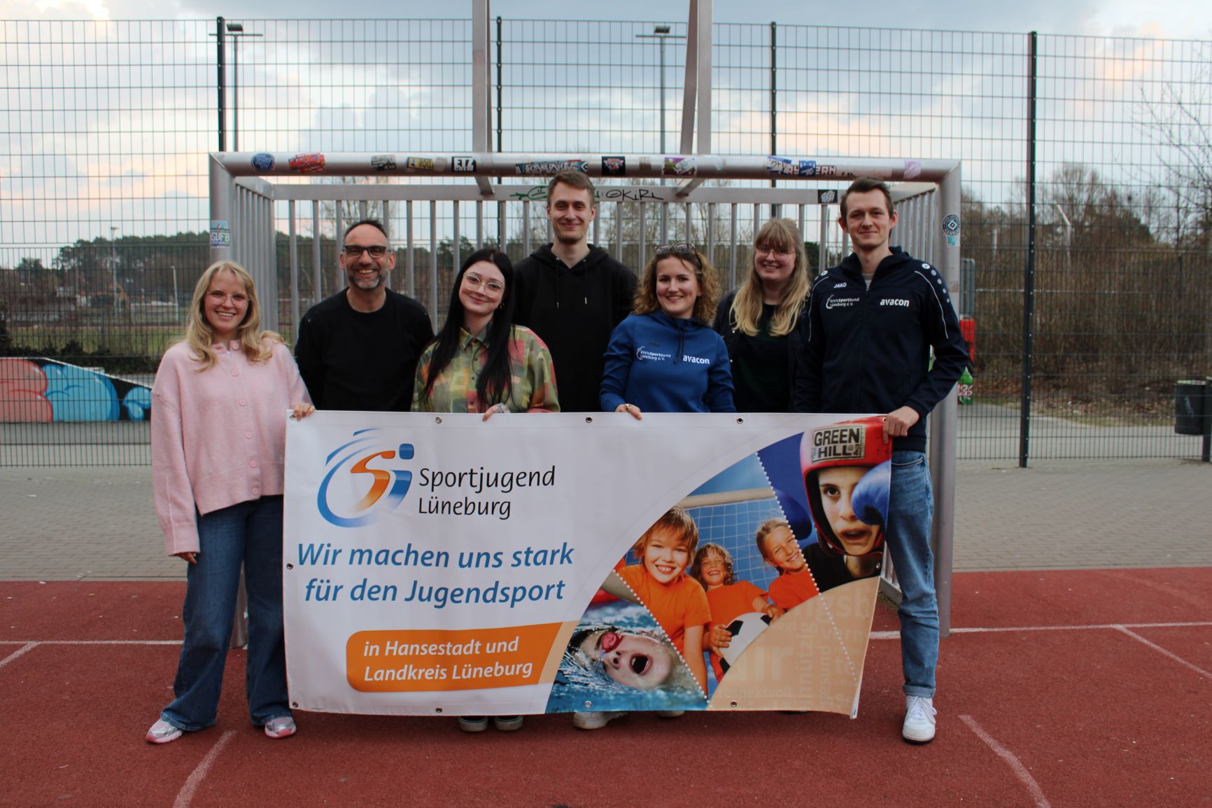 Lilli Kruckenberg, Jens Döhrmann, Lea Schneider, Hannes Richter (alle Jugendpflege), Alana Hopp (Sportjugend), Ann-Christin Behrens (Jugendpflege) und Eric Heinritz (Sportjugend) freuen sich auf viele Kinder und Jugendliche beim Sports Day 2026 in Kaltenmoor.