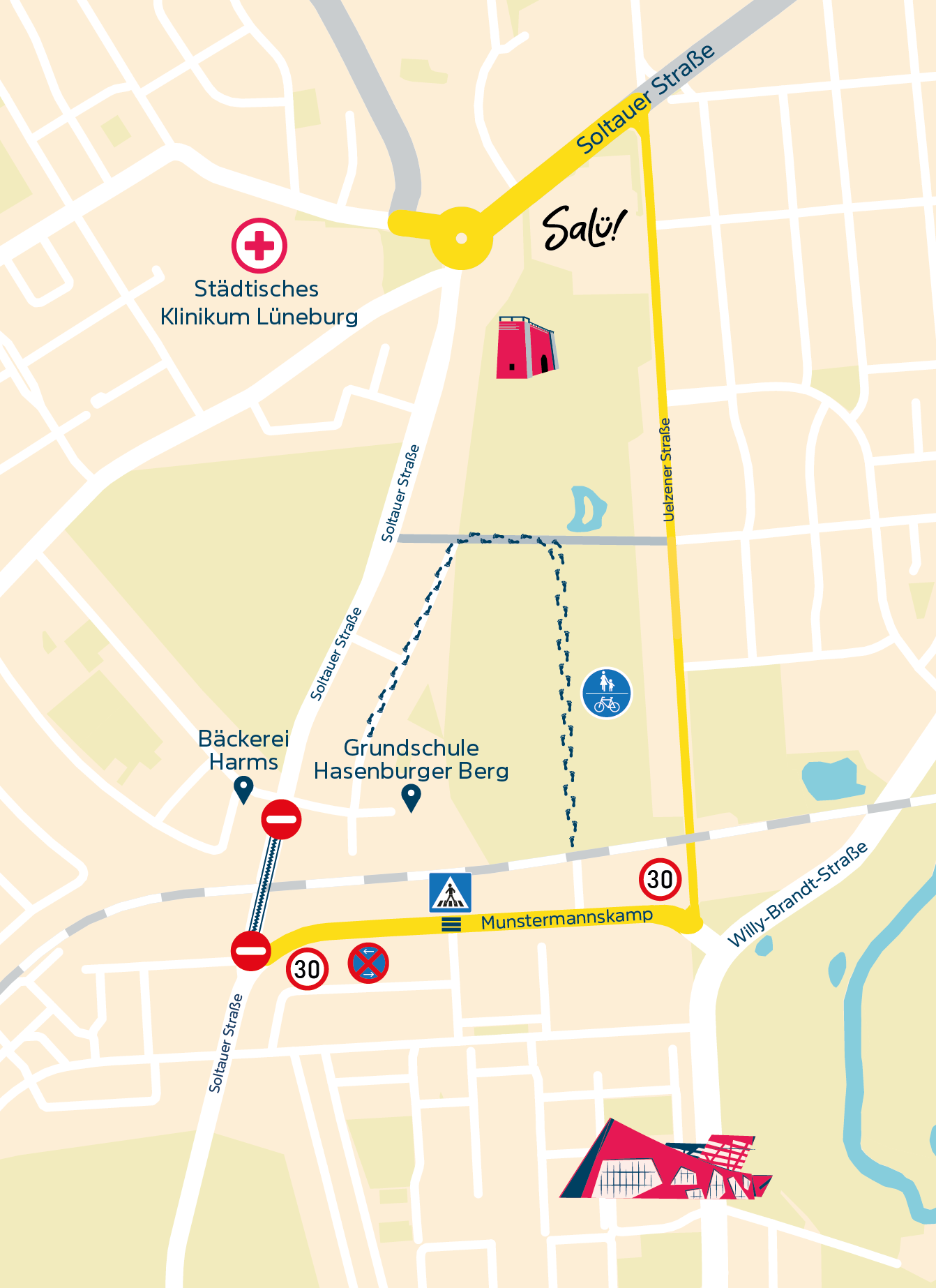 Die Umleitung während der Bauzeit verläuft über Munstermannskamp und Uelzener Straße.