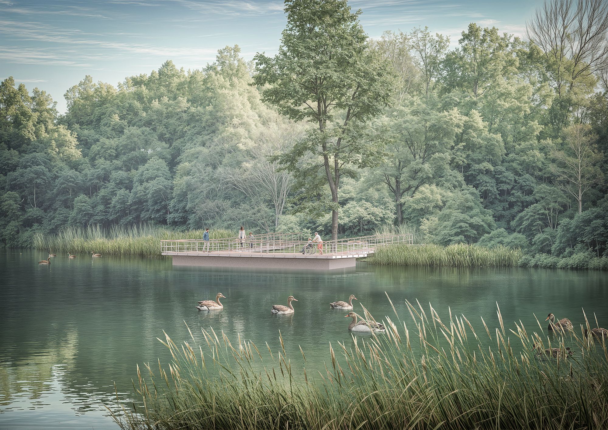 Um den sensiblen Uferbereich zu schützen, entsteht die Plattform als schwimmende Konstruktion, die lediglich am Ufer verankert wird. „So reduzieren wir Eingriffe in Ufervegetation und Baumbestand auf ein Minimum“, so Keuter.