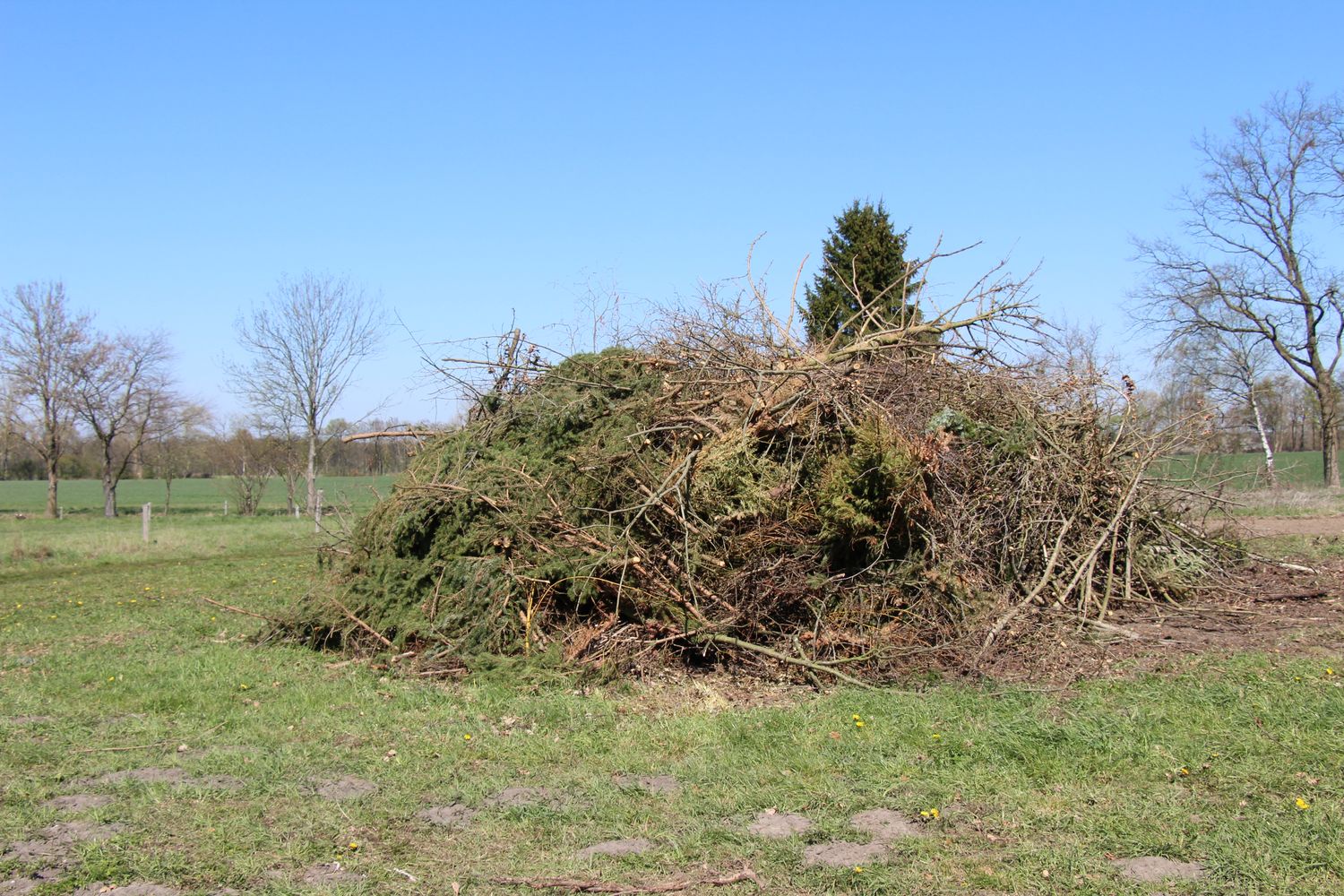 Wichtig: Das Brennmaterial darf zum Schutz von Tieren, die sich in den Haufen verstecken könnten, erst am Tag des Osterfeuers aufgeschichtet werden.