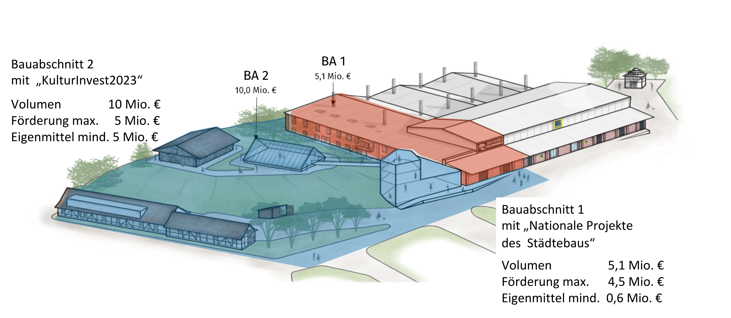 Der zweite Bauabschnitt umfasst einen Erweiterungsbau, die Sanierung der Nebengebäude wie Eselstall, Solebehälter und Solebrunnen sowie die Herstellung der Barrierefreiheit in den Außenanlagen. Kosten: rund zehn Millionen Euro. Bereits 2023 hatte die Stadtverwaltung dafür über das Förderprogramm „KulturInvest 2023“ Gelder bei der Bundesbeauftragen für Kultur und Medien (BKM) beantragt.
