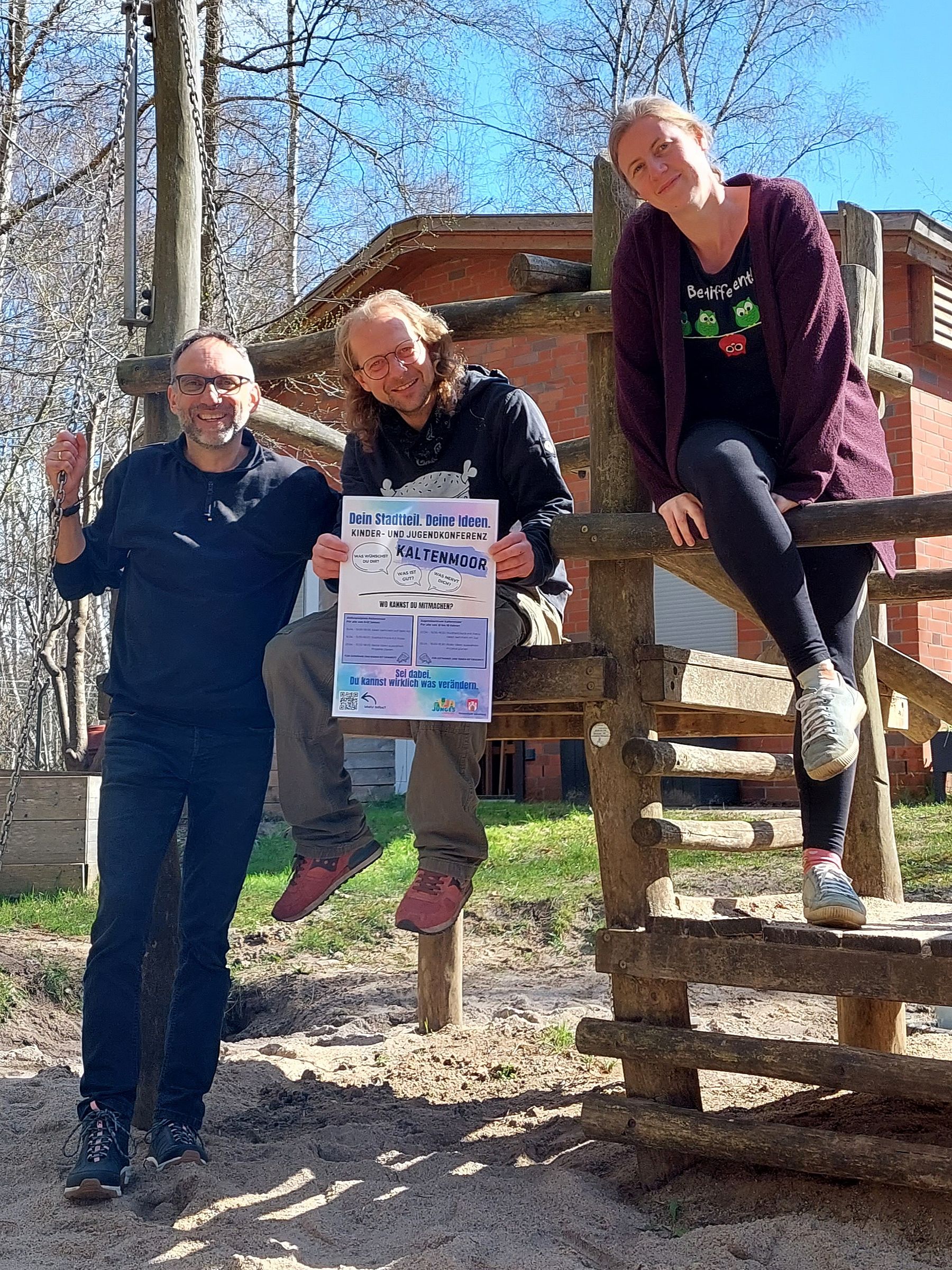 Jens Döhrmann, Claas Hoffmann und Lena Busse von der Stadtjugendpflege freuen sich auf viele Teilnehmende der nächsten Kinder- und Jugendkonferenz.