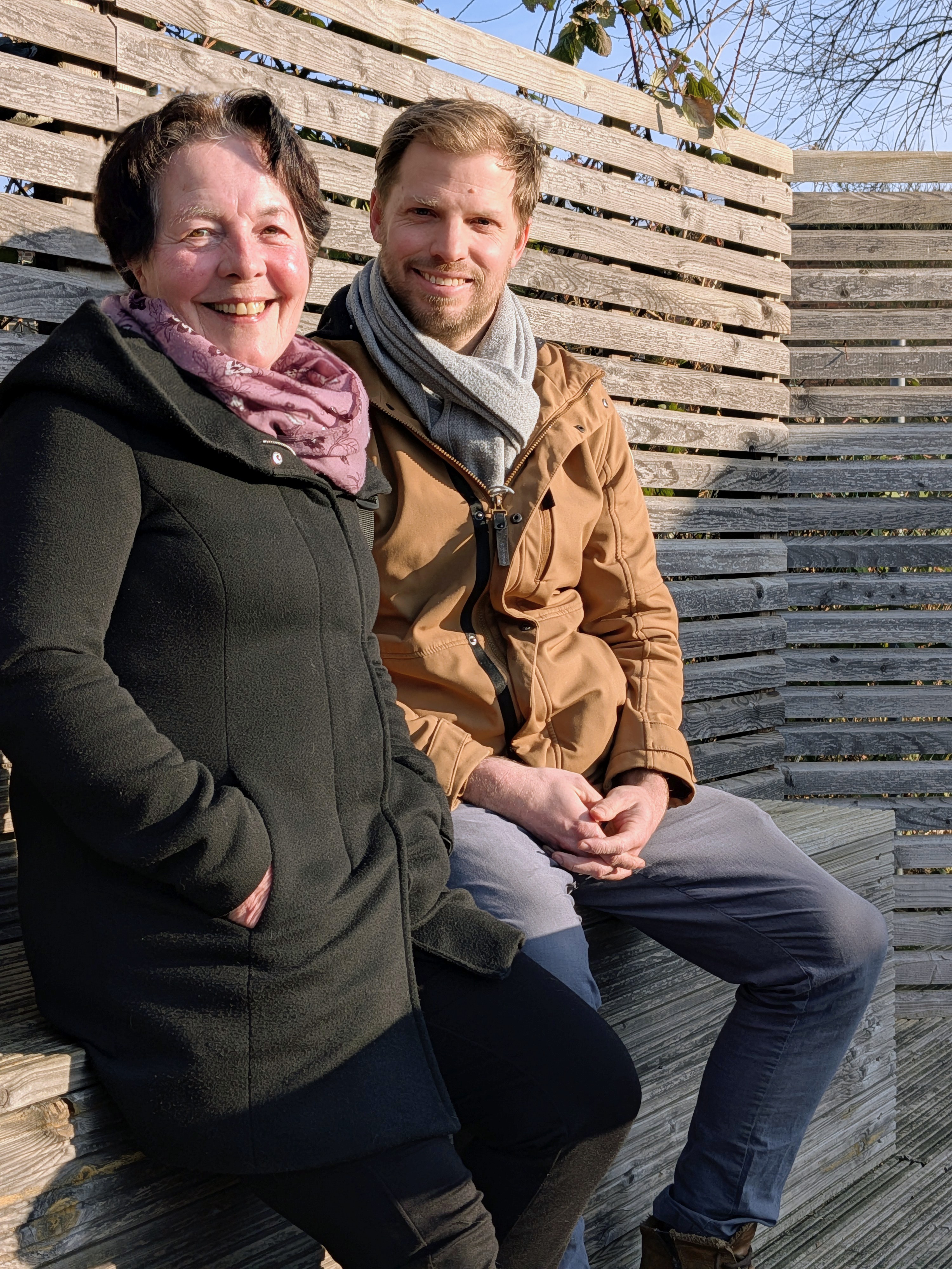 Stadtteilmanager Simon Tipke und Bewohnerin Sigrid Mylatz