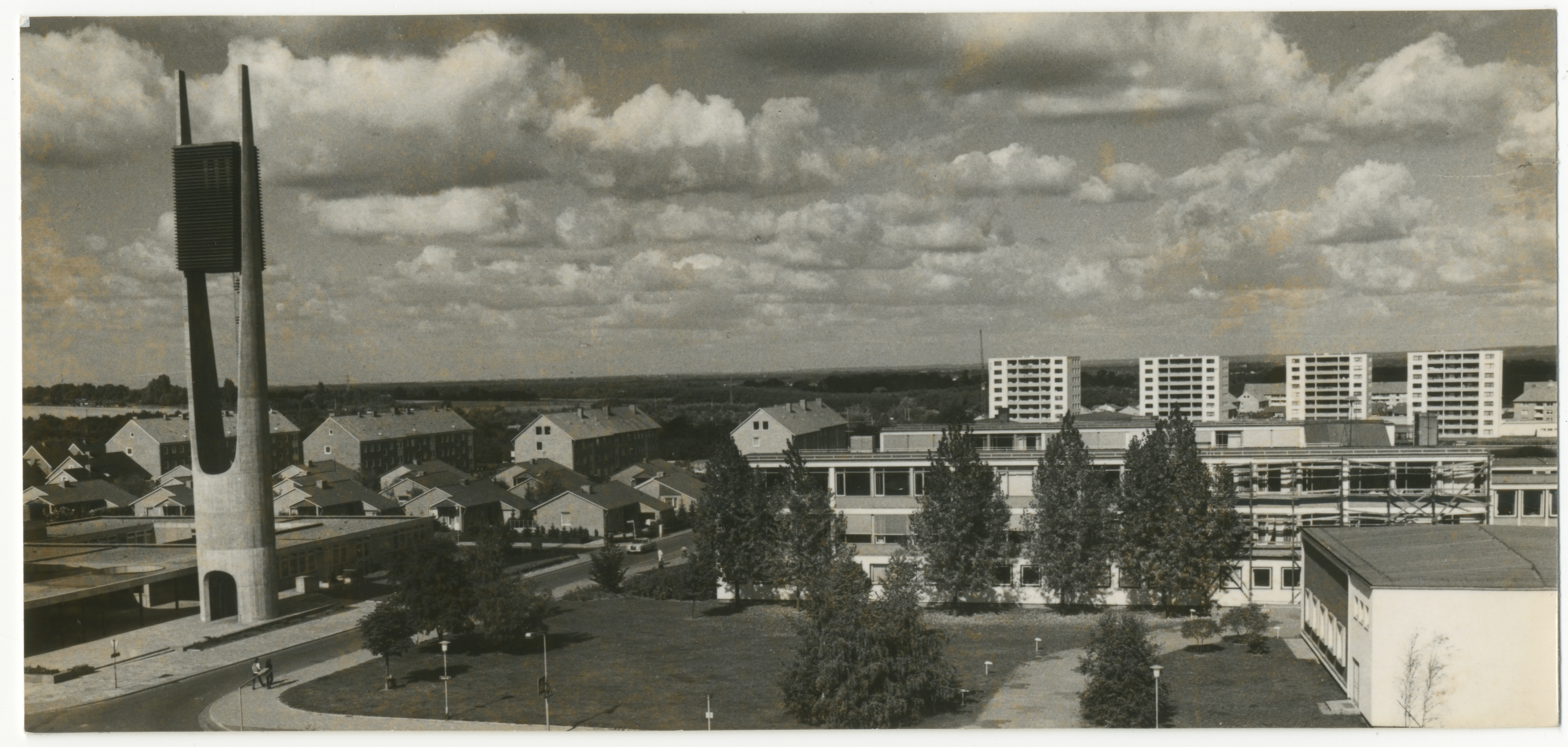 Blick auf den Turm der Pauluskirche im Jahr 1973