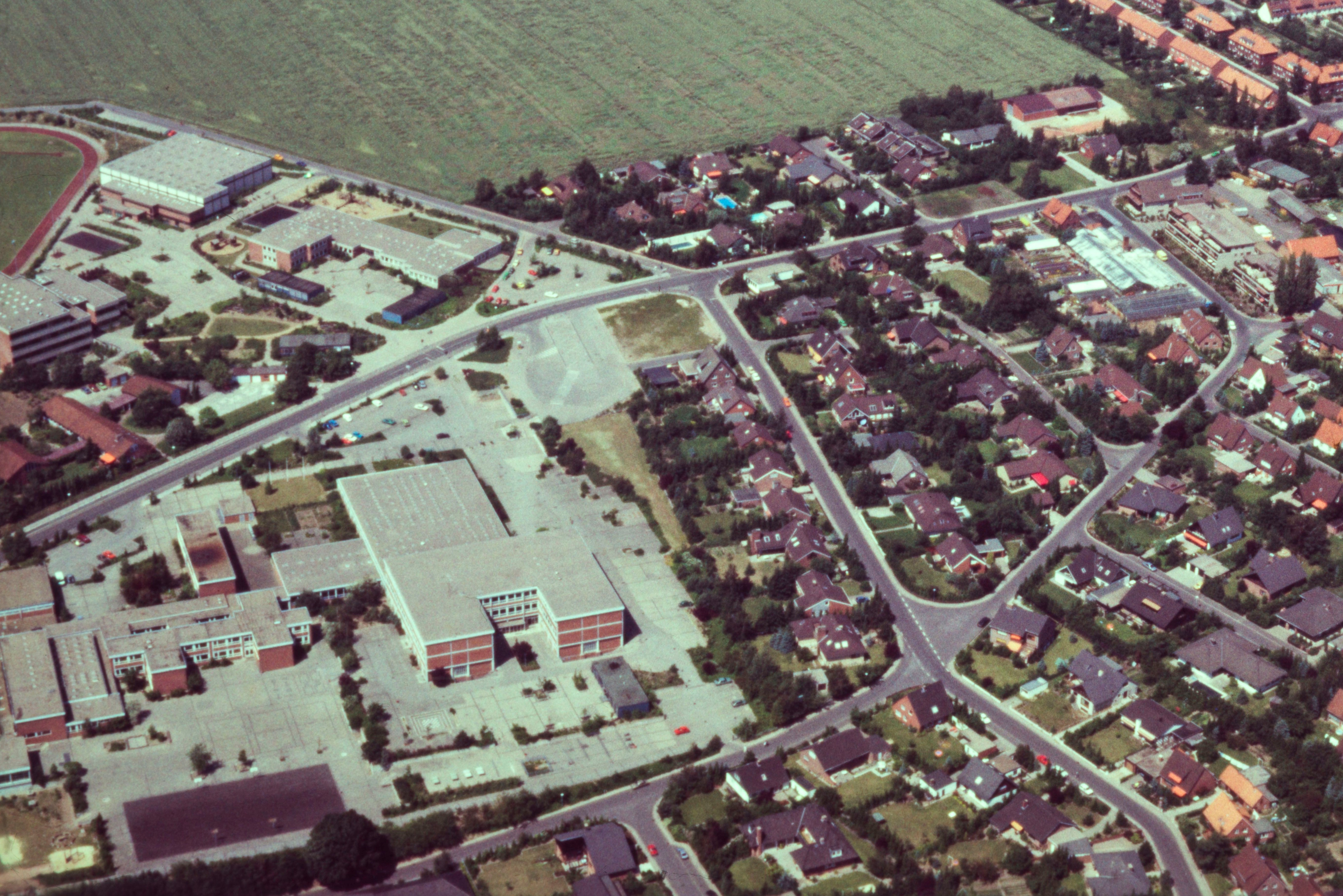 Blick auf Oedeme und das Schulzentrum im Jahr 1984