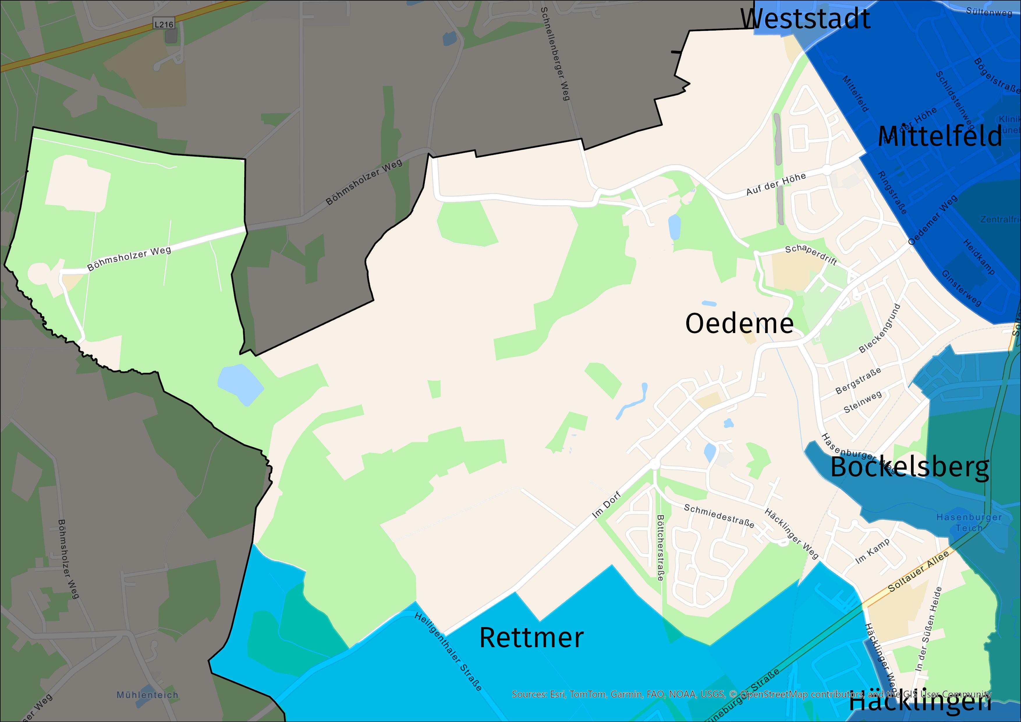 Mit seinen gut 650 Hektar ist Oedeme der zweitgrößte Stadtteil Lüneburgs nach Neu Hagen mit rund 1300 Hektar.