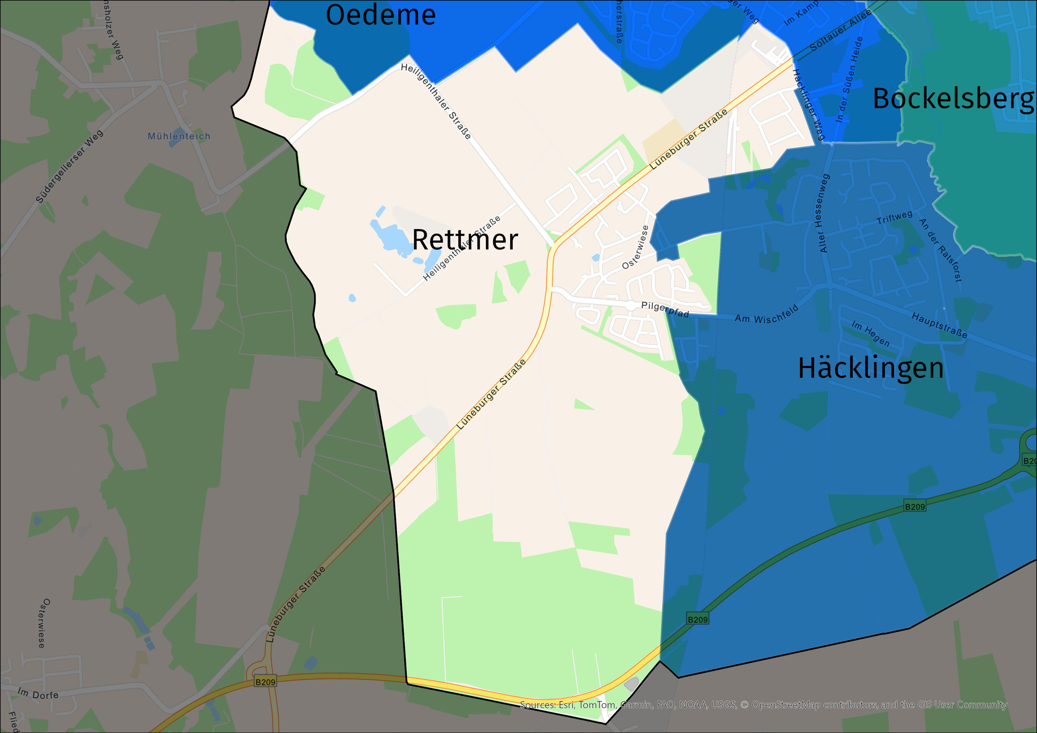 Rettmer liegt im Südwesten von Lüneburg, zwischen den Stadtteilen Häcklingen und Oedeme.